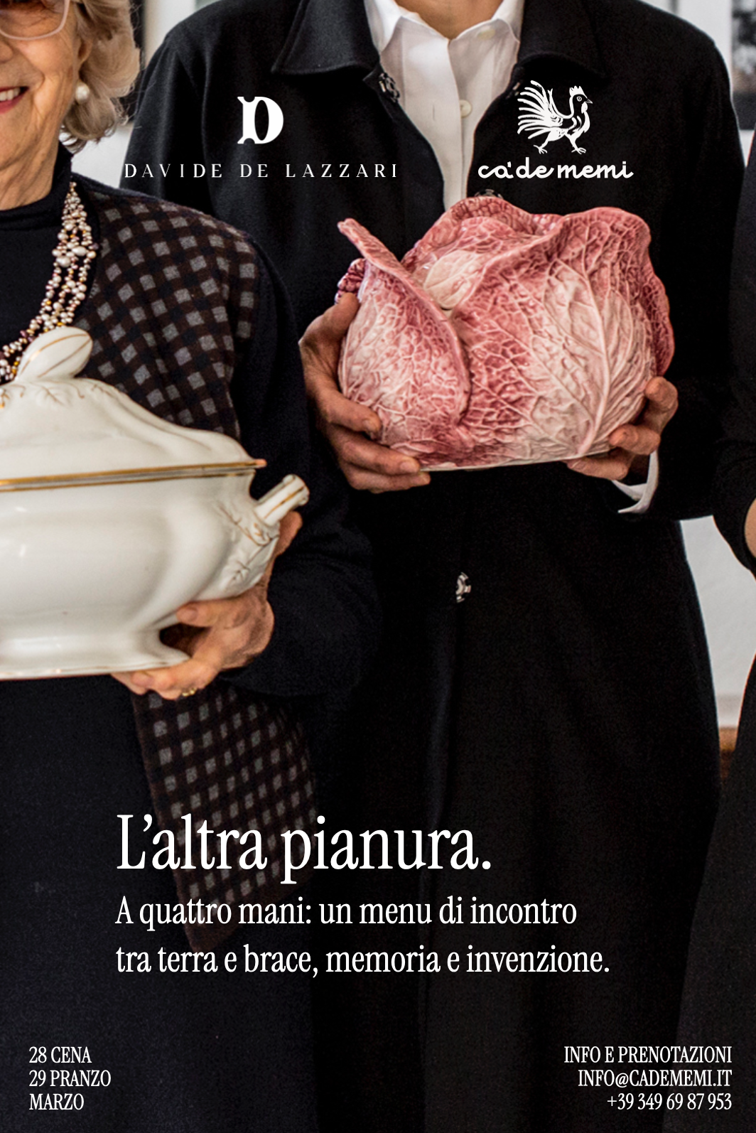 Il weekend del 28 e 29 marzo è dedicato a questa speciale collaborazione: Ca’ de Memi e Davide De Lazzari si incontrano per un nuovo racconto su ciò che offre la campagna, tra le città di pianura.